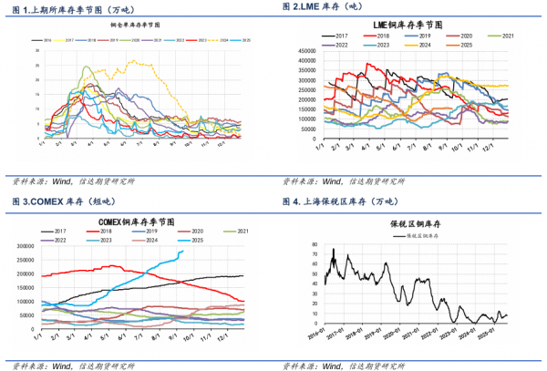 库存角度则相较于供需的周度数据逻辑更加直观,三大交易所库存中库存总量有所上升,上海期货交易所、LME库存和Comex库存都出现明显的累增,显示出当前基本面上需求端的疲软,也对应着消费的淡季。